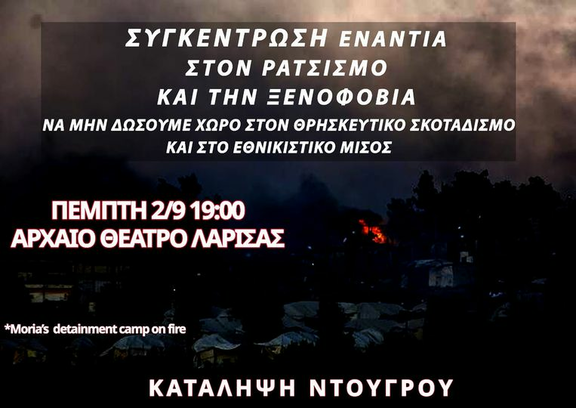 Καλούμε σε συγκέντρωση ενάντια στον ρατσισμό και την ξενοφοβία, αύριο Πέμπτη 2/9 στις 19:00 στο Αρχαίο θέατρο