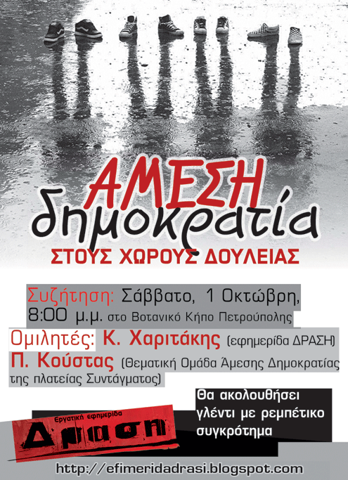 Εκδήλωση - συζήτηση "ΑΜΕΣΗ Δημοκρατία στους χώρους δουλειάς"