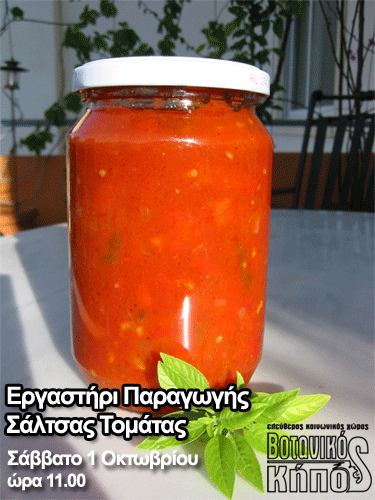 Η Κατάληψη του Βοτανικού Κήπου Πετρούπολης σας καλεί στο εργαστήρι παραγωγής σάλτσας τομάτας στο πλαίσιο του κύκλου εργαστηρίων αυτομόρφωσης με θέμα «Η Αυτάρκεια ως προϋπόθεση Ελευθερίας».