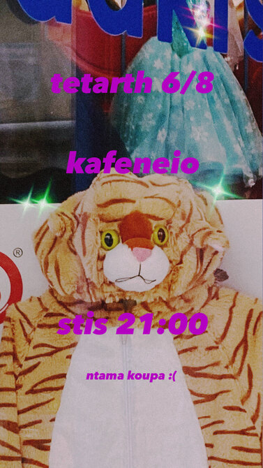 καφενείο την Τετάρτη, με ανεμιστήρα, τις αγαπημένες σας παλόμες, δροσερά αναψυκτικά και διάφορα άλλα, που πρέπει να έρθετε για να ανακαλύψετε