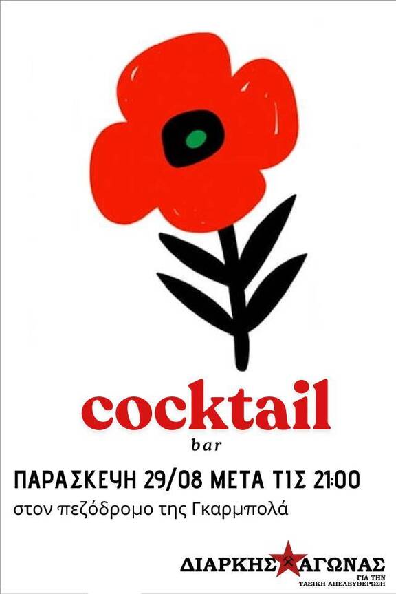 Coctail Bar Οικονομικής Ενίσχυσης στον πεζόδρομο της Γκαρμπολά την Παρασκευή 29/8 μετά τις 21:00