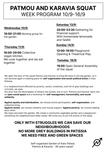 Βρισκόμαστε στη κατάληψη στις 18:00 μέχρι τις 21:00 και κάνουμε εργάσιες παρέα στον λαχανόκηπο.