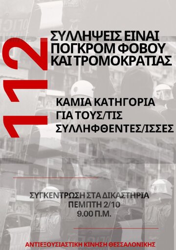 Συγκέντρωση 2/10 9:00 στα Δικαστήρια Θεσσαλονίκης