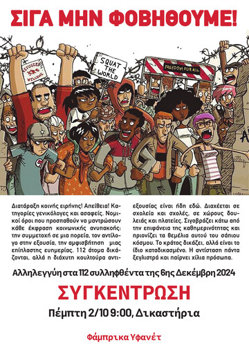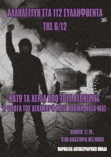 Συγκέντρωση αλληλεγγύης στους/τις 112 συλληφθέντες/φθεισσες τις 6ης Δεκέμβρη - Πέμπτη 2/10 9:00 στα δικαστήρια