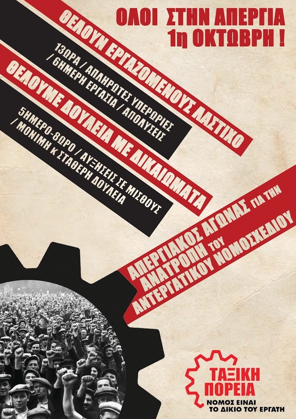 Τετάρτη 1η Οκτώβρη - Όλοι στην απεργία και τις απεργιακές συγκεντρώσεις! - Καλέσματα