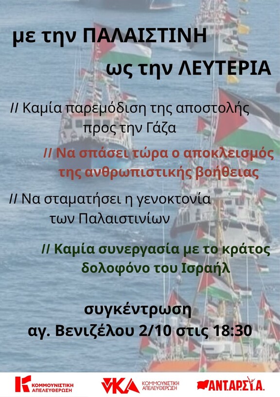 ΕΚΤΑΚΤΟ: Συγκέντρωση αλληλεγγύης στην αποστολή προς τη Γάζα