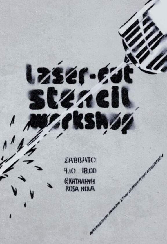 Αυτό το Σάββατο (4 Οκτώβρη), στις 18:00 στο αναγνωστήριο της κατάληψης Rosa Nera, πραγματοποιείται από την πρωτοβουλία ενάντια στην δημιουργική εξειδίκευση εργαστήριο για την κατασκευή stencil με την χρήση laser cutter.