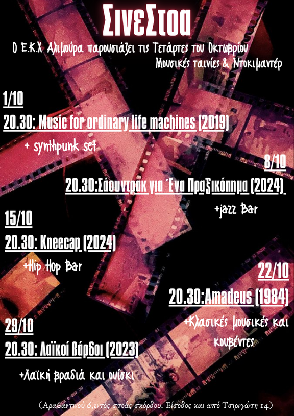 Το πρώτο αφιέρωμα, για τον μήνα Οκτώβριο, αφορά ταινίες και ντοκυμαντέρ με κύριο θέμα μουσικά είδη, μπάντες και καλλιτέχνες που έχουν αφήσει το στίγμα τους στην τέχνη, στην πολιτική, στην κουλτούρα της εκάστοτε σκηνής.