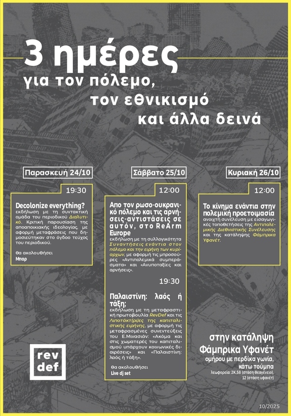 3ημέρες για τον πόλεμο, τον εθνικισμό και άλλα δεινά 24-25-26/10