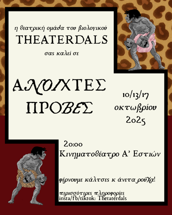Ναι,ήρθε η ώρα. Η φοιτητική ερασιτεχνική θεατρική ομάδα του Βιολογικού ΑΠΘ ✨THEATERDALS✨ ξεκινάει πρόβες για τη νέα ακαδημαϊκή χρονιά 2025-26. Υποδεχόμαστε νέα μέλη σε ΑΝΟΙΧΤΕΣ ΠΡΟΒΕΣ όπου μπορούν να έρθουν όλα ανεξαρτήτως εμπειρίας με το θέατρο. Με χαμόγελο, άνετα ρούχα και κάλτσες μαζευόμαστε στις 10 & 13 & 17 Οκτωβρίου στις 20:00 η ώρα, στο Κινηματοθέατρο Α' Εστιών.Ελάτε να γνωριστούμε!