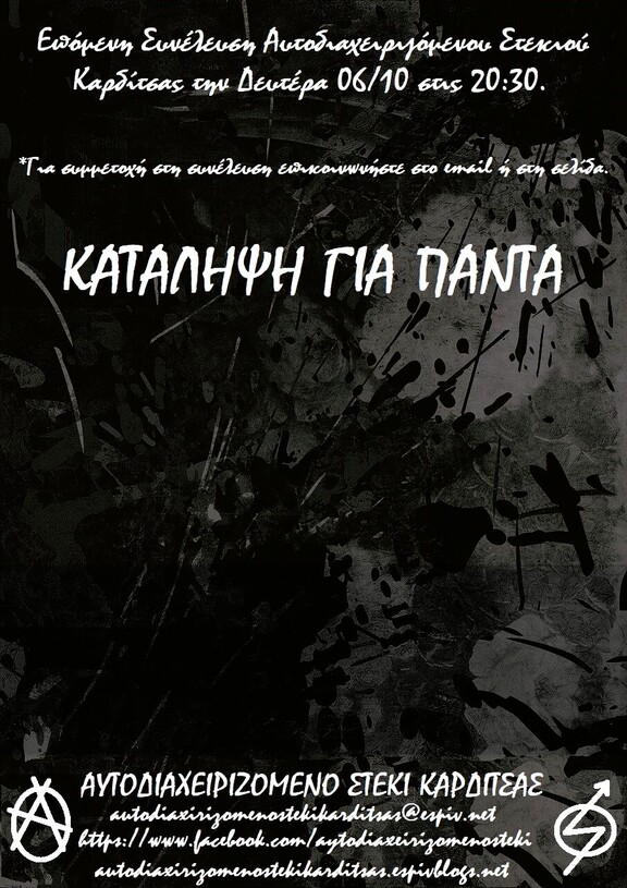 Επόμενη Συνέλευση Αυτοδιαχειριζόμενου Στεκιού Καρδίτσας την Δευτέρα 06/10 στις 20:30.