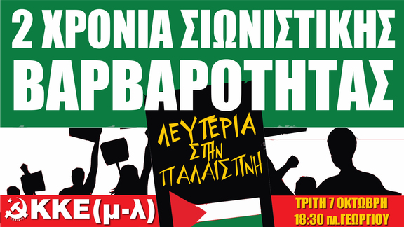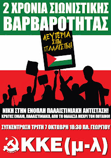 ΟΛΟΙ στη συγκέντρωση αλληλεγγύης στον Παλαιστινιακό λαό, την Τρίτη 7/10 18:30, στην πλ. Γεωργίου