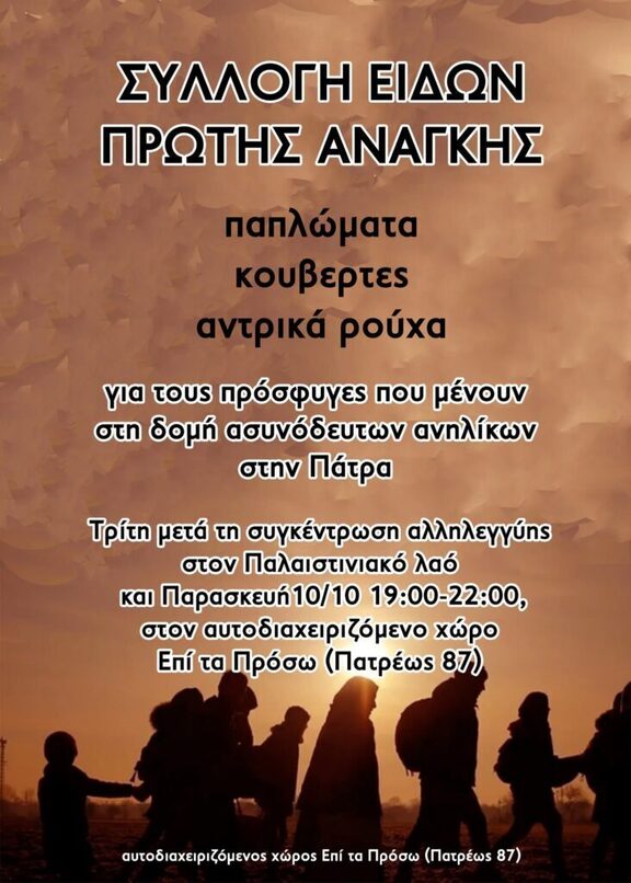 και Παρασκευή 10/10, 19:00-22:00, στον αυτοδιαχειριζόμενο χώρο Επί τα Πρόσω (Πατρέως 87)