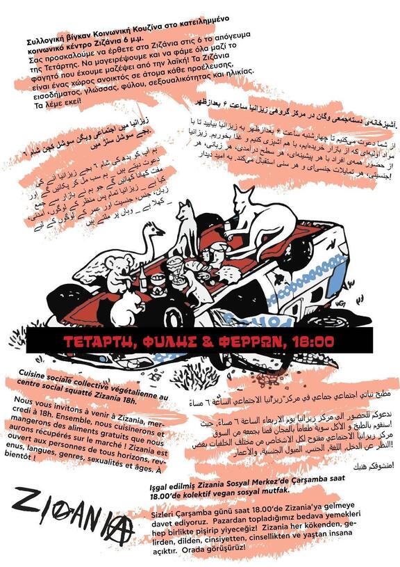 Σας προσκαλούμε να έρθετε στα Ζιζάνια στις 6 το απόγευμα της Τετάρτης. Να μαγειρέψουμε και να φάμε όλα μαζί το φαγητό που έχουμε μαζέψει από την λαϊκή! Τα λέμε εκει.