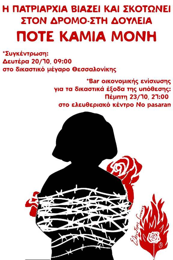 Στεκόμαστε δίπλα σε κάθε καταπιεσμένη και κάθε καταπιεσμένο που σηκώνει κεφάλι. Η συλλογική μας φωνή μπορεί να γκρεμίσει τα τείχη της σιωπής. Μέχρι να κάψουμε συθέμελα το σάπιο εξουσιαστικό, καπιταλιστικό και πατριαρχικό οικοδόμημα. Μέχρι να φτιάξουμε έναν κόσμο που να χωρά μέσα του όλους τους κόσμους.