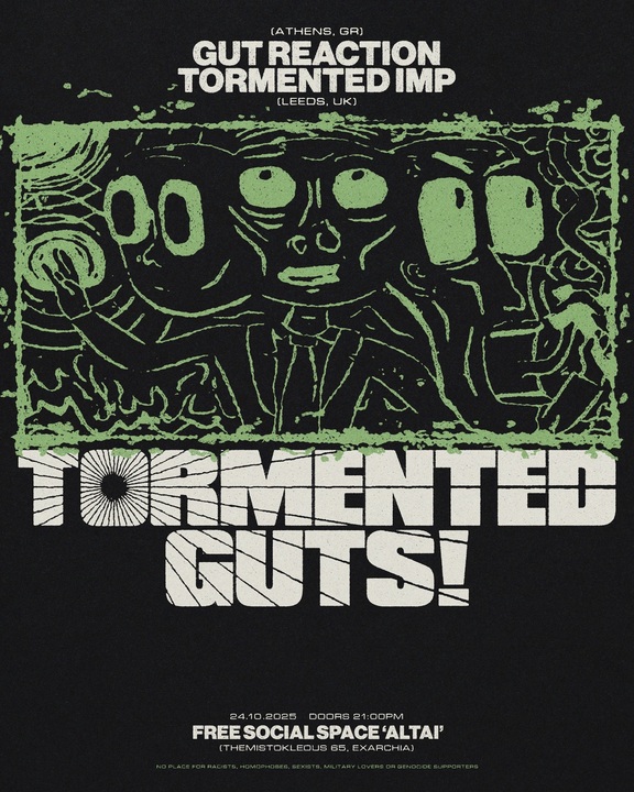 Tormented Imp (d-beat / hardcore punk from Leeds, UK) are coming to spill their Tormented Guts out across the squats and self-managed spaces of Greece.