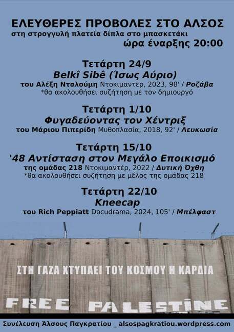 Ελεύθερες Προβολές στο Άλσος Παγκρατίου στη στρογγυλή πλατεία δίπλα στο μπασκετάκι ώρα έναρξης 20:00
