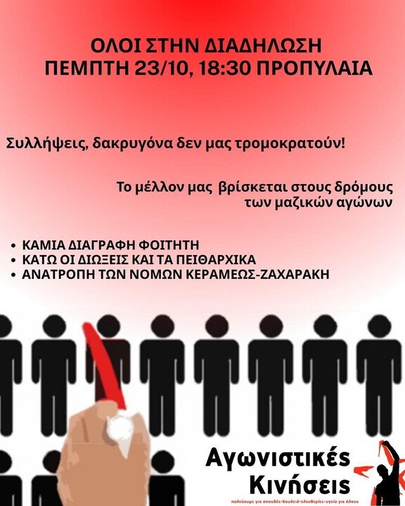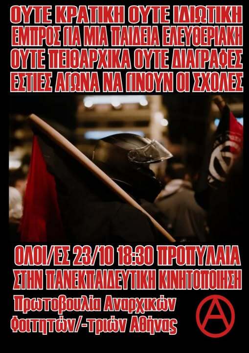 Κάλεσμα στην πανεκπαιδευτική πορεία στις 23/10 | Πρωτοβουλία Αναρχικών Φοιτητών /τριών Αθήνας
