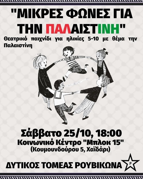 «Μικρές φωνές για την Παλαιστίνη» Θεατρικό παιχνίδι για ηλικίες 5-10 με θέμα την Παλαιστίνη.