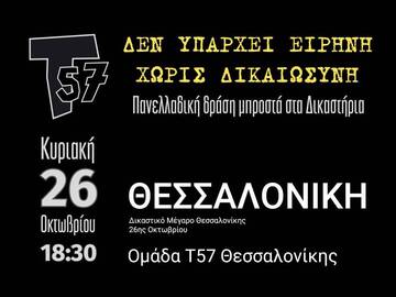 Το Τ57 Θεσσαλονίκης καλεί με την σειρα του στα Δικαστήρια Θεσσαλονίκης (26ης Οκτωβρίου 5) στις 18:30.