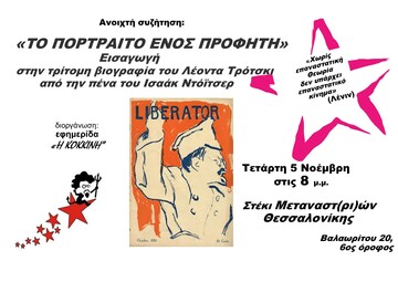 Η συζήτηση, που διοργανώνει η εφημερίδα "Η Κόκκινη", θα πραγματοποιηθεί στο Στέκι Μεταναστ(ρι)ών Θεσσαλονίκης, Βαλαωρίτου 20, 6ος όροφος.