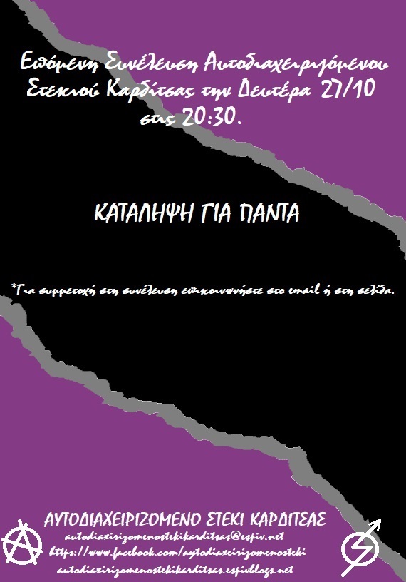 Επόμενη Συνέλευση Αυτοδιαχειριζόμενου Στεκιού Καρδίτσας την Δευτέρα 27/10 στις 20:30.