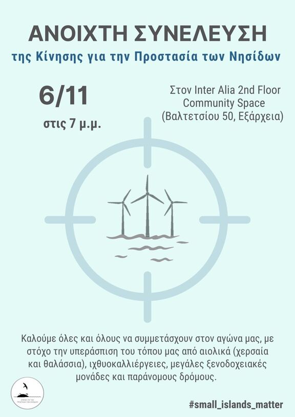 Η Κίνηση για την Προστασία των Νησίδων καλεί όλες και όλους που αγαπούν τη φύση και τον τόπο μας, να βρεθούμε και να συζητήσουμε πώς θα οργανώσουμε πιο αποτελεσματικά την υπεράσπιση των νησιών, της θάλασσας, των παραλιών, των τοπίων, των βουνών, των δασών, των ποταμιών, των λιμνών και της γης μας.