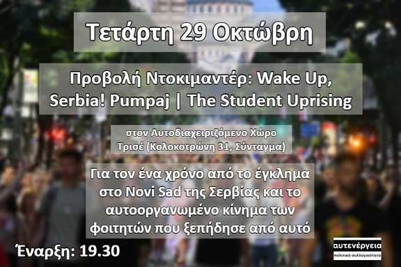 Προβολή: "Wake up, Serbia! Pumpaj" – 1 χρόνος από το Νόβι Σαντ