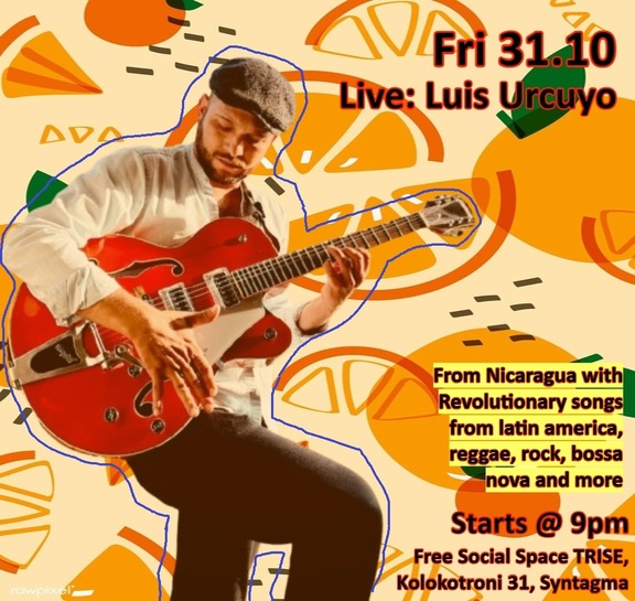 Ο φίλος Luis Urcuyo, μουσικός του δρόμου από τη Νικαράγουα, θα βρεθεί στην ταράτσα μας για μια βραδία με επαναστατικά τραγούδια από την Λατινική Αμερική, ροκ, ποπ, μπόσα νόβα κ.α.!