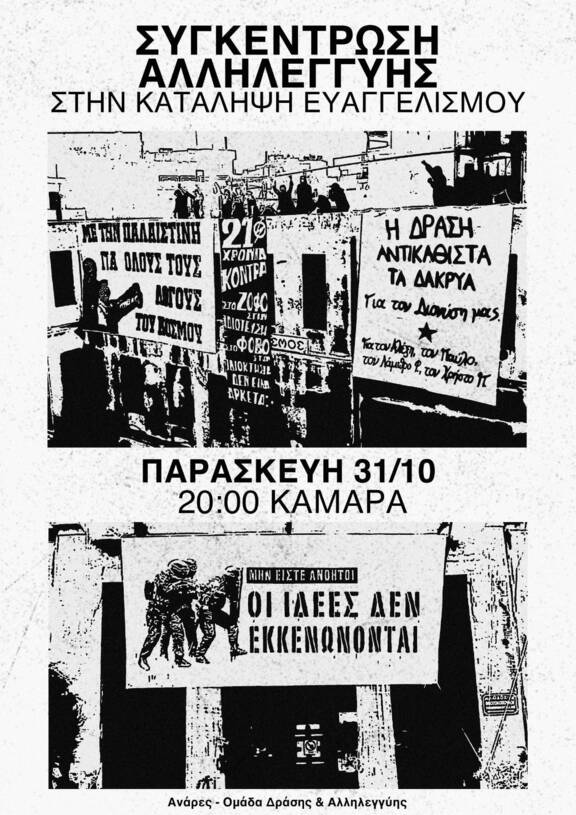 Έκτακτη συγκέντρωση αλληλεγγύης στην Κατάληψη του Ευαγγελισμού, Παρασκευή 31/10, Καμάρα 20:00