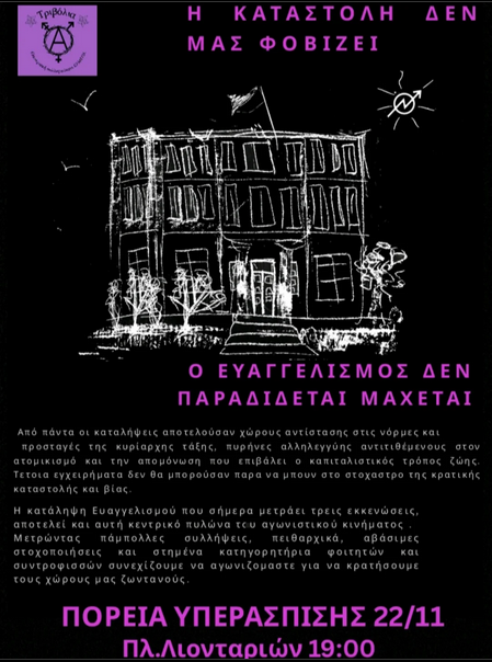 Αλληλεγγύη στην κατάληψη του Ευαγγελισμού και στους συλληφθέντες/ στις συλληφθείσες