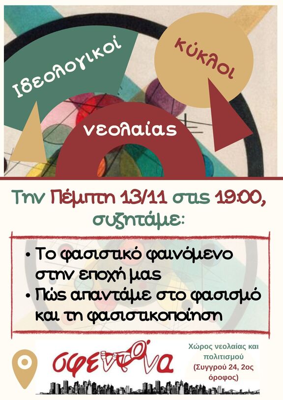 Την Πέμπτη, 13/11, στις 7μμ, στην «ΣΦΕΝΤΟΝΑ», εγκαινιάζουμε τους ΙΔΕΟΛΟΓΙΚΟΥΣ ΚΥΚΛΟΥΣ ΝΕΟΛΑΙΑΣ.