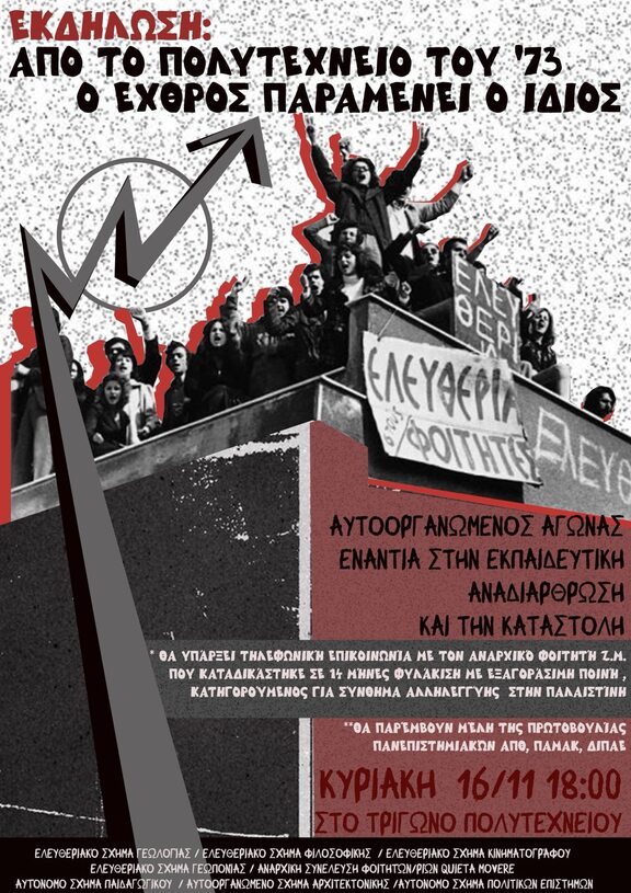 Εκδήλωση: Απ’ το Πολυτεχνείο του ‘73 ο εχθρός παραμένει ο ίδιος