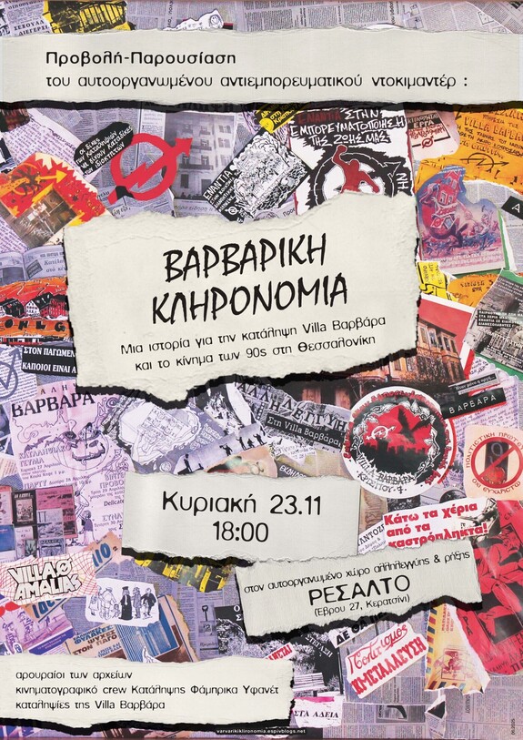 [ένα αυτοοργανωμένο-αντιεμπορευματικό ντοκιμαντέρ για την ιστορία της κατάληψης Villa Βαρβάρα και το κίνημα των 90s στη Θεσσαλoνίκη]