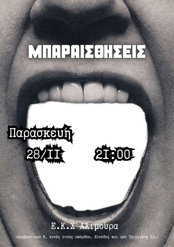 Την Παρασκευή 28/11 η Αλιμούρα ανοίγει για ΜπαρΑισθησεις στις 21:00