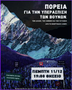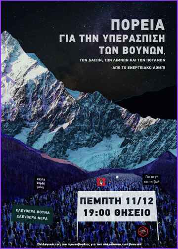 Στηρίζουμε την πορεία για την υπεράσπιση των βουνών, των λιμνών και των ποταμών από το ενεργειακό λόμπι - Πέμπτη 11/12, 19.00 Θησείο