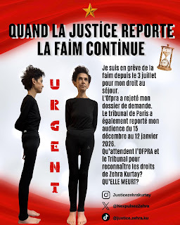 Θα βρεθούμε μπροστά στο Γαλλικό Προξενείο στην Αθήνα για να απαιτήσουμε την αποδοχή των αιτημάτων της Ζέχρα Κιουρτάι, η οποία βρίσκεται σε απεργία πείνας στη Γαλλία για τα δικαιώματα παραμονής της.