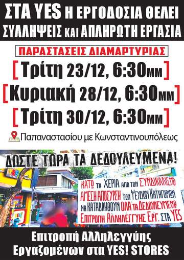 Στα YES!STORES η εργοδοσία θέλει ΣΥΛΛΗΨΕΙΣ και ΑΠΛΗΡΩΤΗ ΕΡΓΑΣΊΑ!