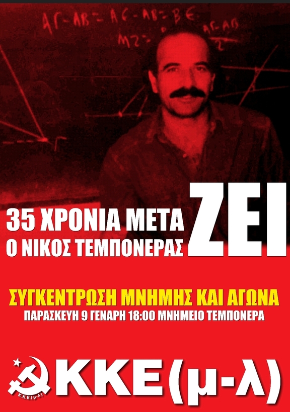 ΚΚΕ(μ-λ): 35 ΧΡΟΝΙΑ ΜΕΤΑ: Η ΘΥΣΙΑ ΤΟΥ ΝΙΚΟΥ ΤΕΜΠΟΝΕΡΑ ΜΑΣ ΚΑΛΕΙ ΣΕ ΝΕΟΥΣ ΑΓΩΝΕΣ