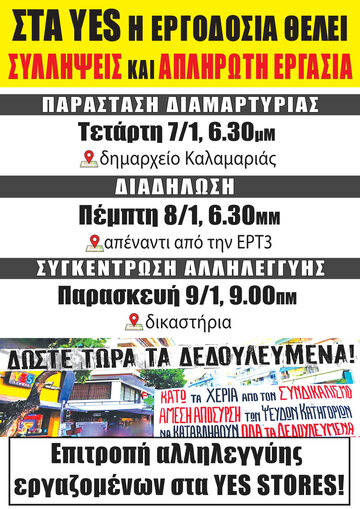 Κάλεσμα για μαζική κινητοποίηση αλληλεγγύης στον εργαζόμενο στα YES! STORES