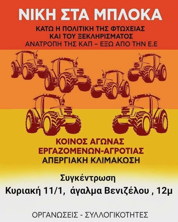 ΝΙΚΗ στα ΜΠΛΟΚΑ των ΑΓΡΟΤΩΝ - Γενική Απεργία ΤΩΡΑ! - Κινητοποιήσεις Κυριακή 11/1