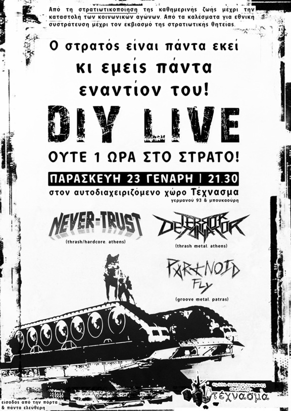 DIY LIVE ενάντια στο στρατό την παρασκευή 23 γενάρη στις 21.30…