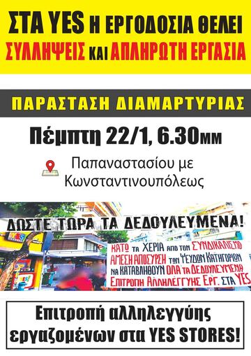 Στα YES!STORES η εργοδοσία θέλει ΣΥΛΛΗΨΕΙΣ και ΑΠΛΗΡΩΤΗ ΕΡΓΑΣΊΑ!
