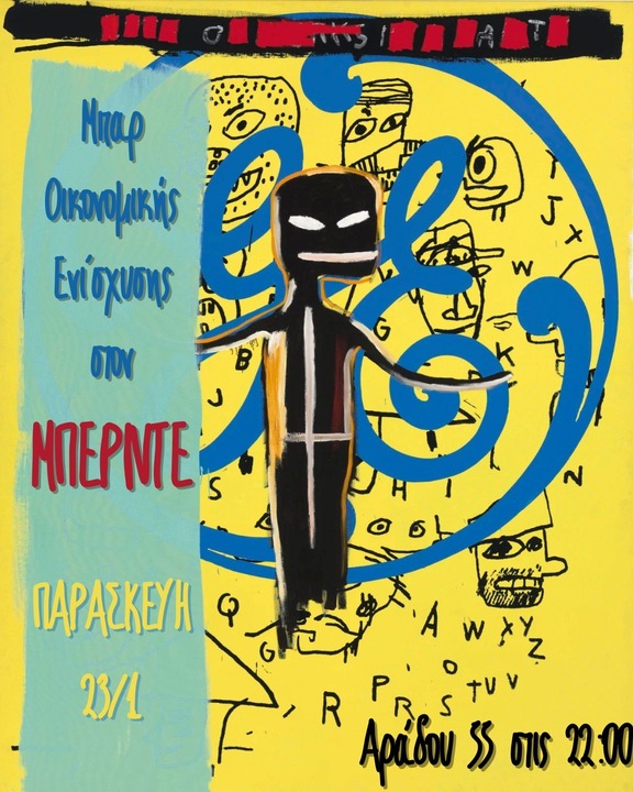 Αυτήν την Παρασκευή 23/1 από τις 22:00 και μετά θα πραγματοποιηθεί μπαρ οικονομικής ενίσχυσης στον Μπερντέ.