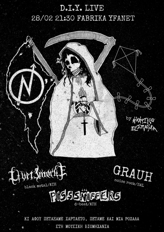 Σάββατο 28/02, στις 21:30, στην κατάληψη Φάμπρικα Υφανέτ, το Ηχητικό Ξέσπασμα διοργανώνει D.I.Y. live με τη συμμετοχή των:
