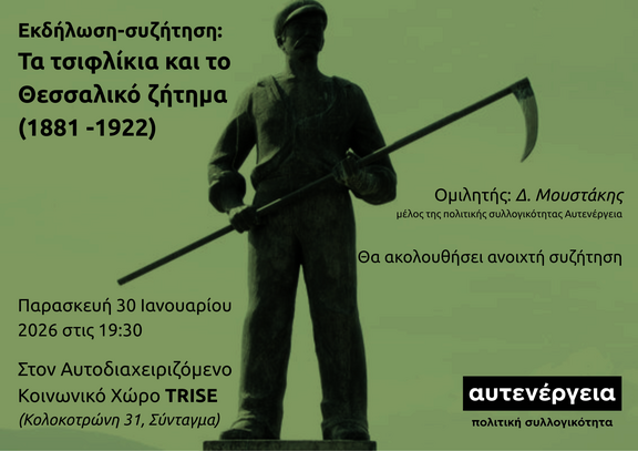 Εκδήλωση-συζήτηση: Τα τσιφλίκια και το Θεσσαλικό ζήτημα (1881 -1922)