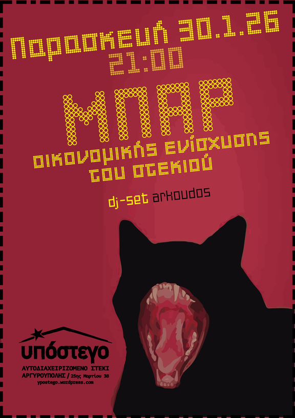 Παρασκευή 30.1.2026 από τις 21:00 | Μπαρ οικονομικής ενίσχυσης του στεκιού