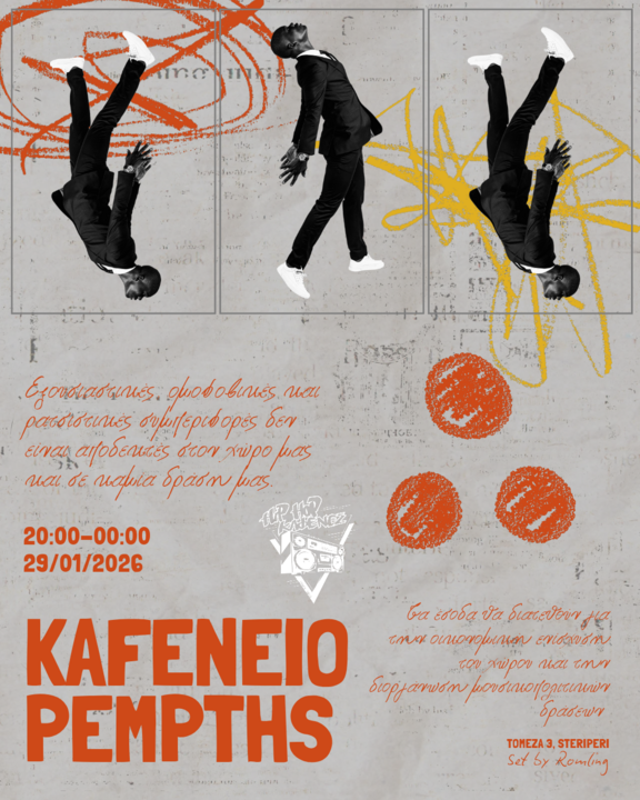 **Ρατσιστικές, σεξιστικές, ομοφοβικές και εξουσιαστικές συμπεριφορές και απόψεις δεν είναι αποδεκτές στον χώρο μας και σε καμία δράση μας.