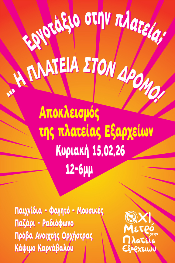 Στις 15 Φεβρουαρίου στηρίζουμε το κάλεσμα της συνέλευσης "Όχι μετρό στην πλατεία Εξαρχείων" σε ημέρα αποκλεισμού της πλατείας Εξαρχείων