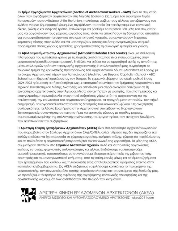 Διεθνείς εμπειρίες εργαζόμενων αρχιτεκτόνων / μηχανικών / τεχνικών - Εργασιακές συνθήκες / δικαιώματα / διεκδικήσεις / αγώνες